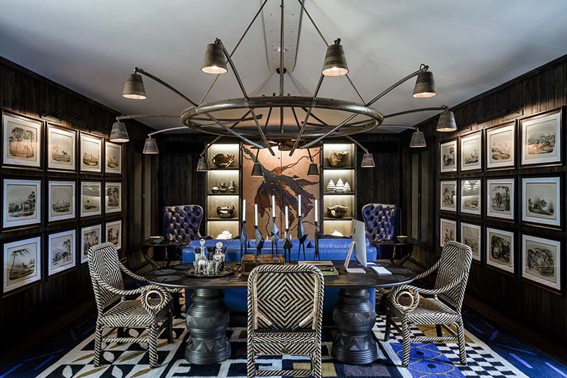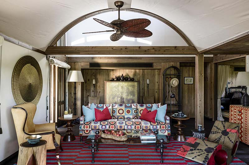 The thatched central areas are opulent and feature incredible artwork from artists from across the continent (which are available to purchase). The main areas include a bar/lounge, dining area, outdoor boma, climate-controlled wine cellar where you can enjoy wine tasting, reception area, air-conditioned library and a viewing deck. Accessed from the main area is the spa with two treatment rooms, a swimming pool, gym and outdoor yoga deck.