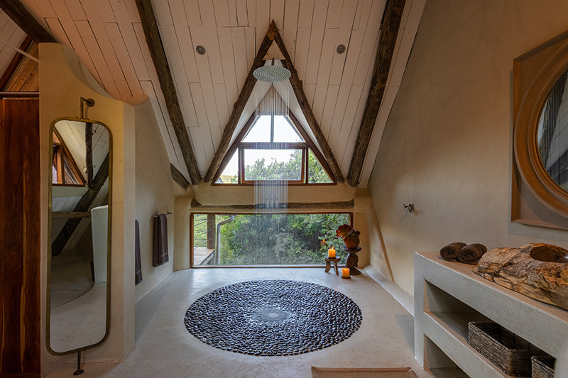 There’s a big downstairs lounge with fireplace, a bar, upstairs dining room with further comfortable seating leading out on to a deck, a gym, a spa treatment room (treatments at extra cost) and a large viewing deck in front of the villa with a firepit and spectacular views. Steps lead down to a second viewing deck with wood fired hot tub. There is a 25 metre infinity swimming pool which takes full advantage of the views. Next to the pool is an outdoor dining space.