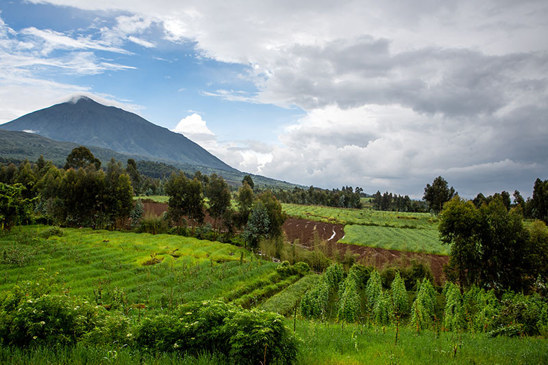Volcanoes National Park (Parc National des Volcans) is one of the last remaining strongholds of the endangered Mountain Gorilla and is located in north-western Rwanda on the borders of the DRC and Uganda. It comprises of a group of five volcanoes, the Virungas, which rise to some 15000 ft above sea-level. The steep slopes and valleys provide a variety of rich montane ecosystems – from evergreen and bamboo forest, to mature canopy forest, open grassland, swamp and heath.