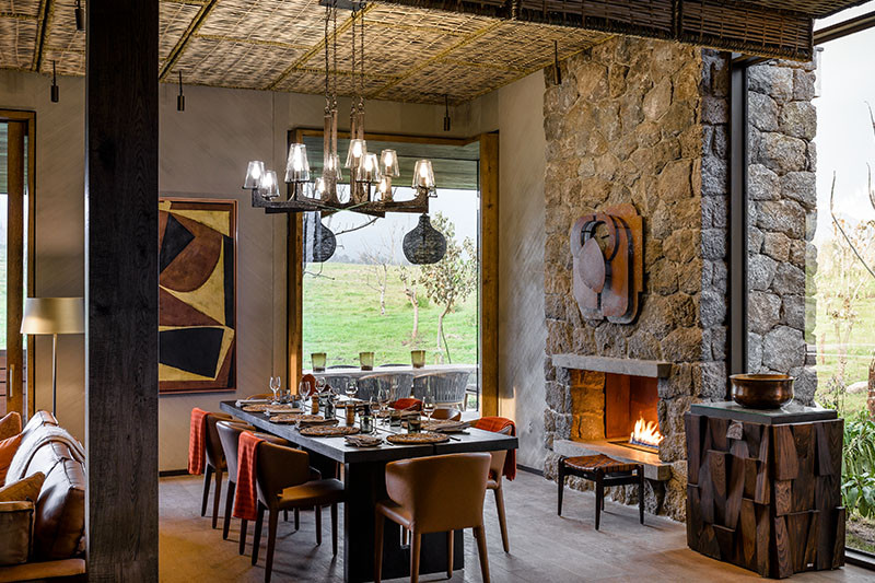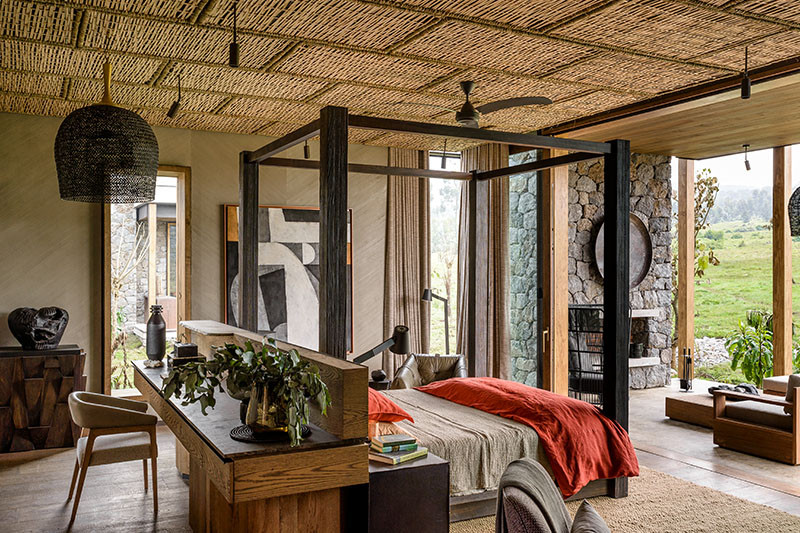 Located beside Singita Kwitonda Lodge is Singita Kataza House, an exclusive-use four bedroom villa. The house caters for up to eight guests and includes a master bedroom suite (complete with study, dressing room and heated plunge pool), junior bedroom suite (with dressing room) and two further en suite bedrooms, all with outdoor sitting areas and fireplaces. There are plenty of central indoor and outdoor dining and lounge spaces, a private wine cellar, interactive kitchen, stocked ‘deli bar’, massage treatment room, small gym, private cinema room, ‘gear room’ for changing into and out of trekking clothes, and heated outdoor pool. Each suite has use of an iPad. The house comes with a house manager, chef and team of staff and guests also have access to all the facilities at Kwitonda Lodge with a golf cart for movements between the two properties.