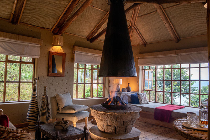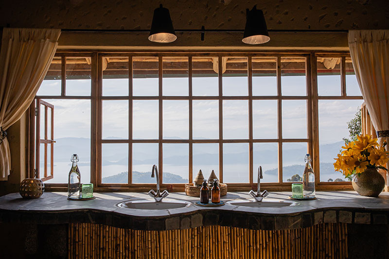 There is a central bar, lounge and dining area overlooking the lakes, as well as the Ikirunga Spa and Sauna. Next to the central bar/lounge is the informative ‘Dian Fossey Map Room’ providing information on the local history of the area, both in terms of exploration and conservation, and offering a nice place to relax for the afternoon or an alternative area to enjoy dinner in the evenings. Meals can be taken privately or there is an option in the evening to join other guests on the ‘family table’ giving you the opportunity to chat about your adventures.
