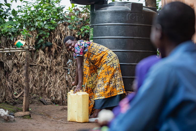 Although it rains heavily around Virunga Lodge, there are very few facilities for water catchment and storage and in the dry season there is an acute shortage of water. The village communities around Virunga lodge do not have enough clean water for drinking or for growing crops. Virunga Lodge has been providing plastic water tanks to the local community and with the support of their guests, tanks have been donated to all households in Sunzu village and is working towards donating to all families in Bugeyo village.