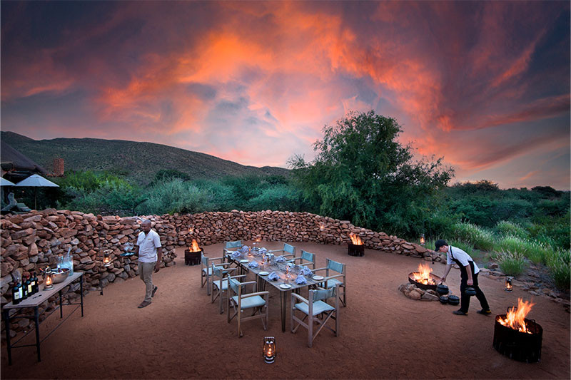Activities include private game viewing drives in open four wheel drive vehicles (mostly by day, but by night is also available), guided bush walks and horse riding (intermediate to advanced riders only). There are several archaeological sites and some ancient rock engravings, whilst the clear night skies allow for wonderful star-gazing with excellent views of the Milky Way and the solar system. On the Tswalu Reserve itself, several families of meerkats have been habituated to human presence, giving guests the chance to view and photograph these incredible creatures at close quarters. There are also two options for sleep outs: the first, “Naledi”, is included in your stay and comprises a simple sleep out deck under the stars; the second, “Malori” is set on a sand dune facing the rising sun, and has a spacious deck with open air bathroom and sitting/dining area, while the bedroom is under canvas (extra costs apply for Malori). Guests can also be introduced to the conservation and research work of the Tswalu Foundation (see below) and visit the health clinic and preschool established by Tswalu for their staff and neighbouring communities.