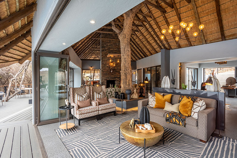 Main lodge facilities include a lounge, dining aera and bar, TV lounge and a rim flow swimming pool overlooking the active waterhole. There is a beautiful boma area under a large fig tree, overlooking the waterhole where open air dining takes place if the weather allows. At one end of the lodge is a small gym and second smaller pool. There is also an underground hide perfectly positioned by the waterhole for close up, eye level wildlife encounters.