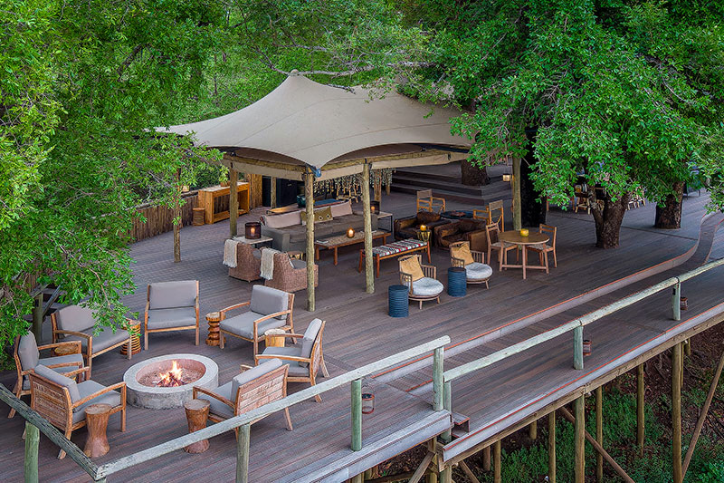 The central areas comprise a large raised deck, built in and around the tree trunks on the edge of the river. There are covered lounge and dining areas, plenty of space for open air dining and a fire pit area, all overlooking the water and hills beyond.