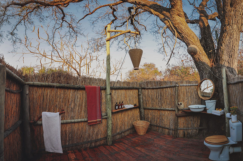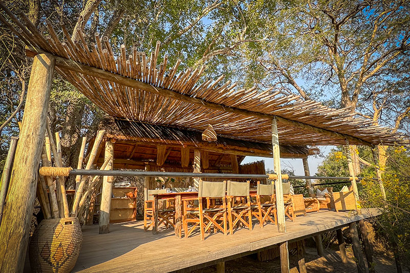 The main central areas are under thatch on an elevated deck overlooking the floodplain and comprise a bar, lounge and dining area. Whenever possible, meals are served under the stars, close to the fire pit where guests gather for pre and post dinner drinks.